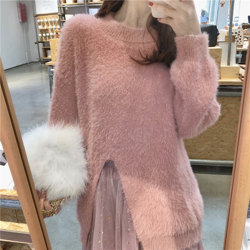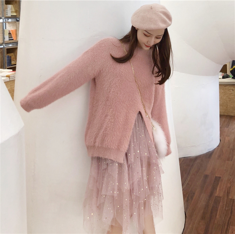 / 毛衣配裙子兩件套寬松開叉長袖針織衫高腰星月亮片網紗A字半身裙