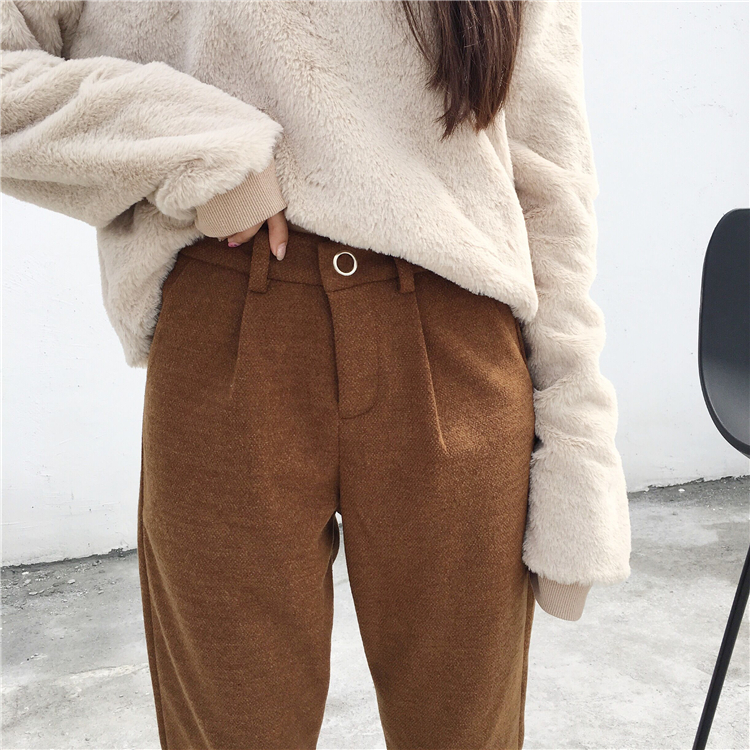 韓國chic秋冬款時尚個性褲腳白條卷邊顯瘦休閑哈倫褲九分褲女