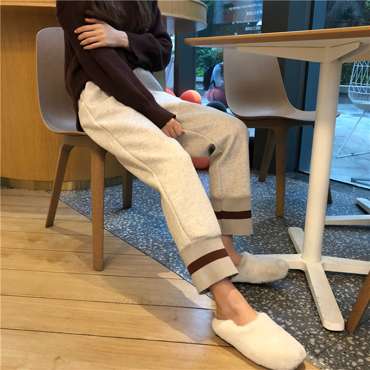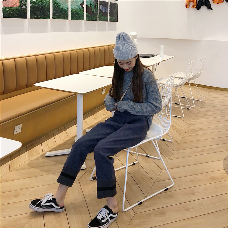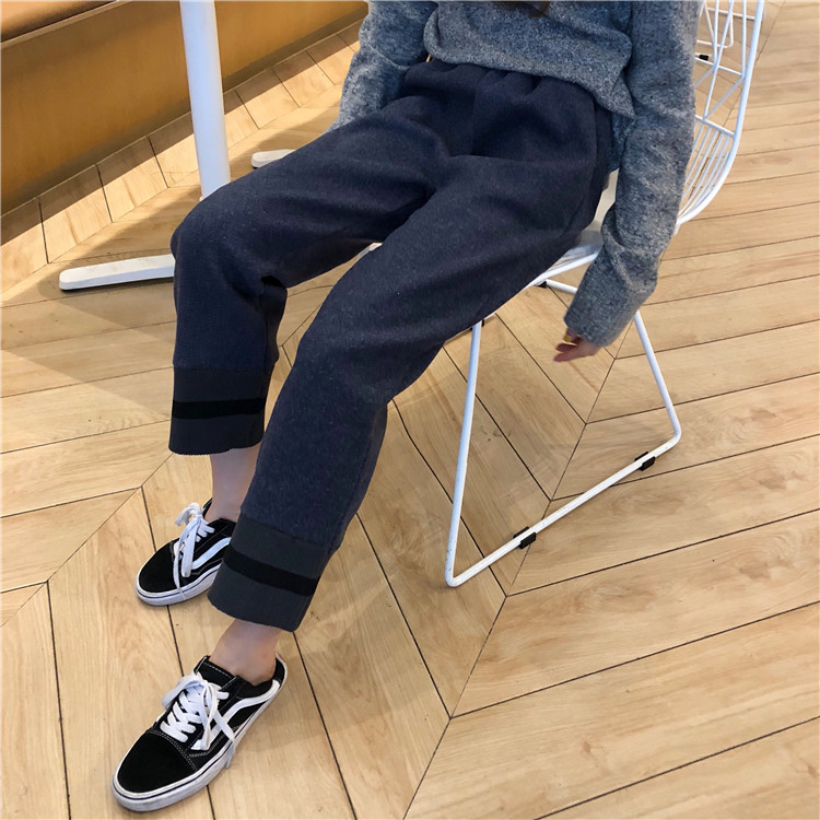 可可里小姐~網紅同款秋冬寬松九分休閑褲毛呢褲女