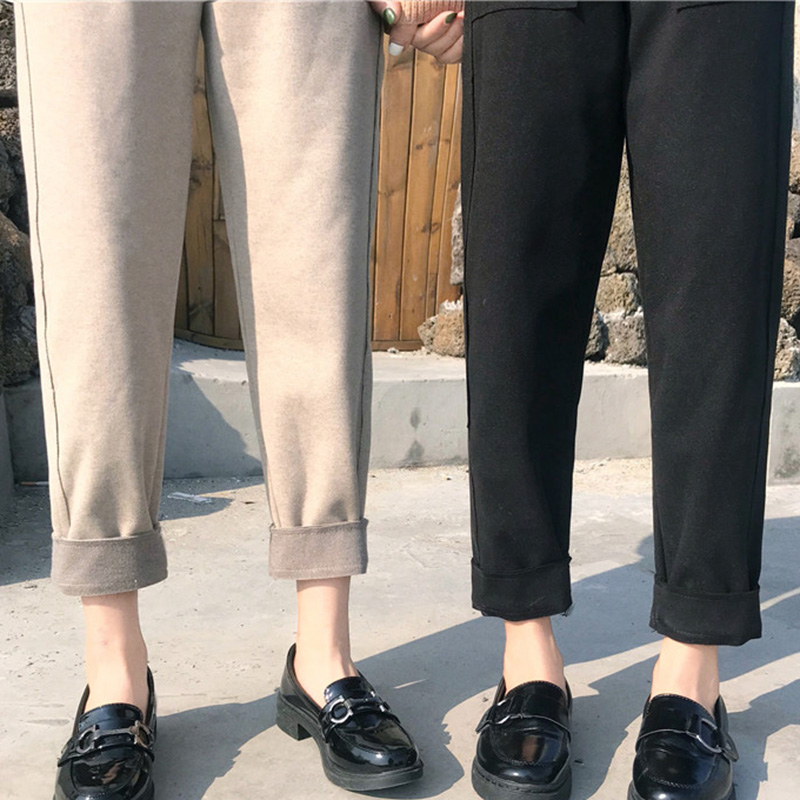 / 毛呢休閑褲女秋冬2018新款韓版小腳褲子學生呢子蘿卜褲女裝哈倫褲