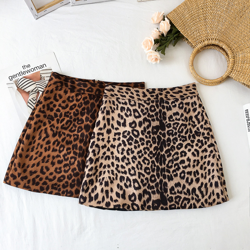 秋裝女2018新款顯瘦時尚豹紋包臀半身裙復古風高腰休閑A字短裙子