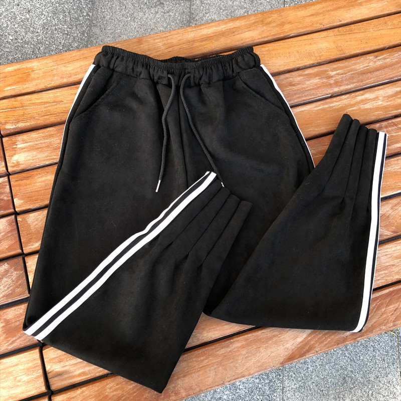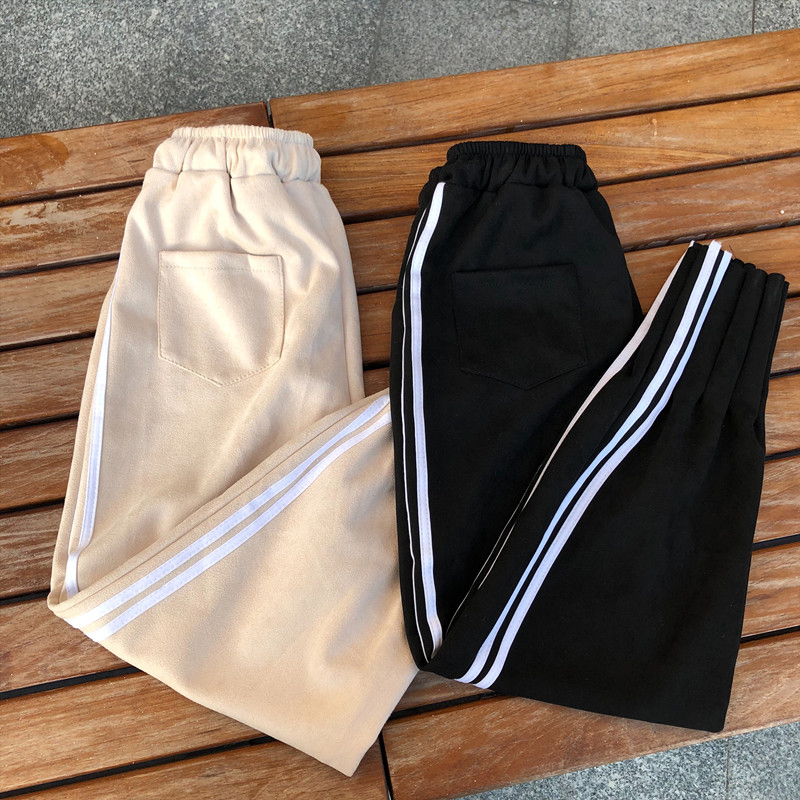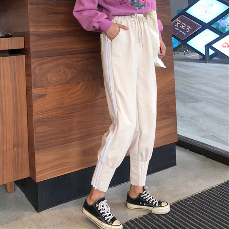 / 學生高腰休閑褲女秋冬裝2018新款韓版寬松顯瘦側面雙杠哈倫褲子潮