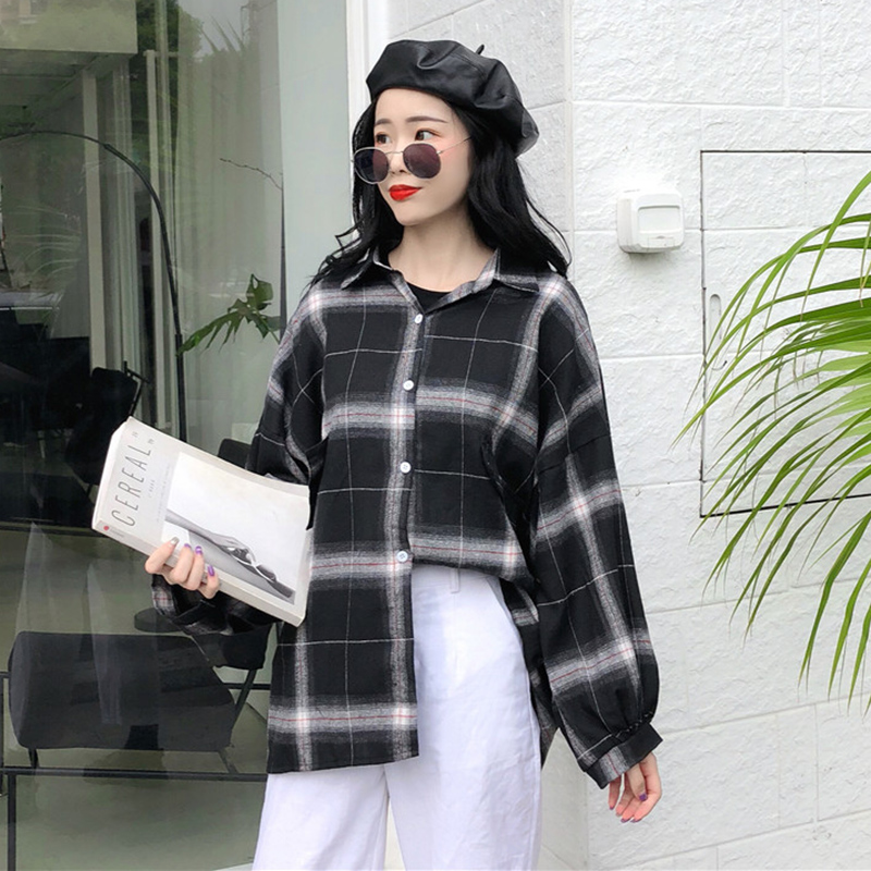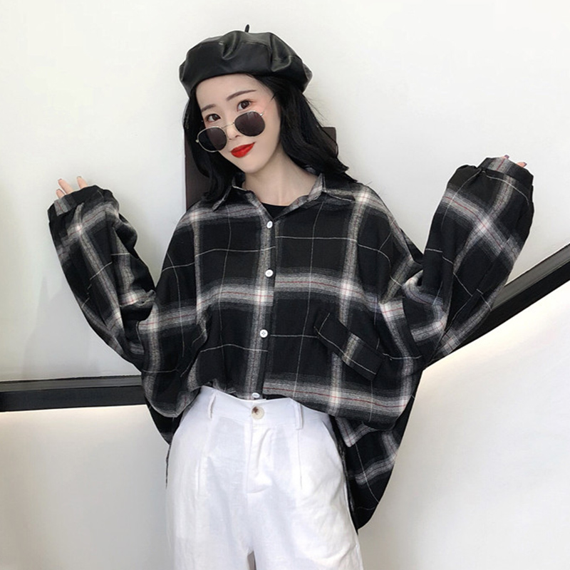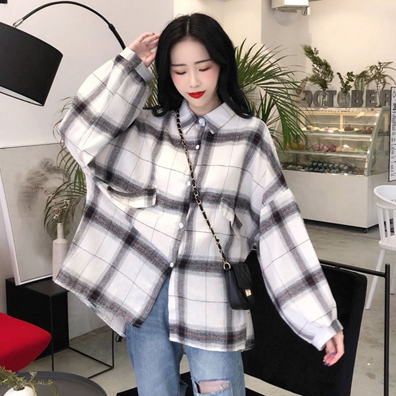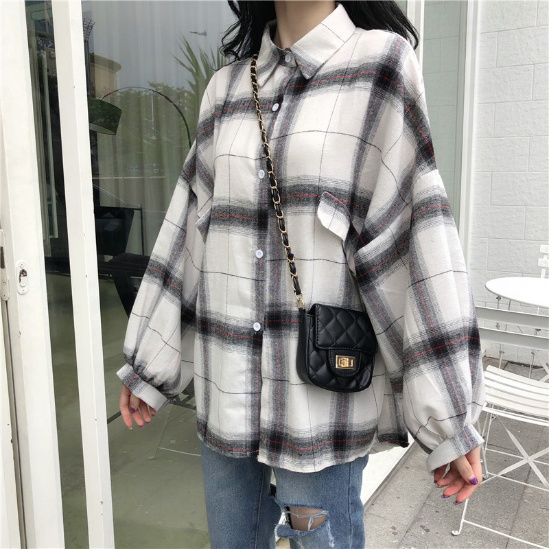 / 格子襯衫女2018秋裝新款復古港味寬松泡泡長袖上衣時尚慵懶薄外套