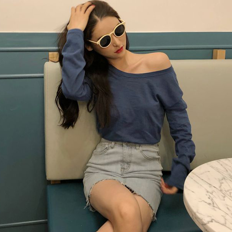 / 心機露背修身長袖打底衫女早秋新款韓版女裝學生黑色圓領T恤上衣