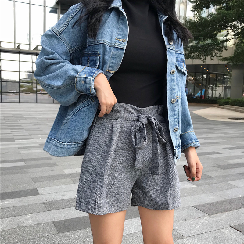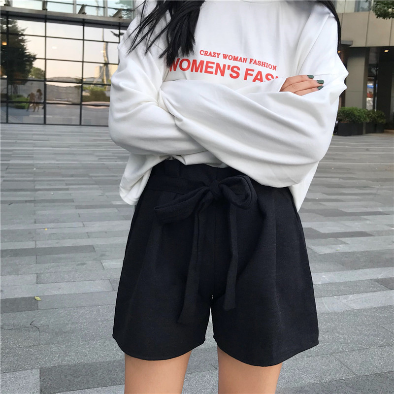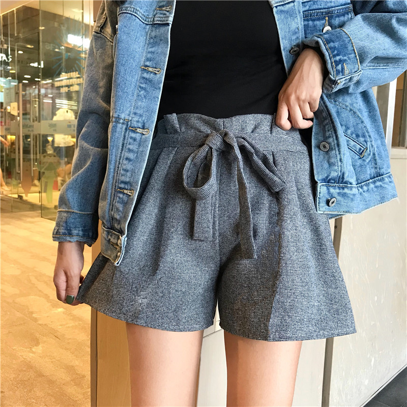 毛呢短褲女秋冬裝2018新款韓版高腰顯瘦系帶闊腿褲寬松休閑靴褲子