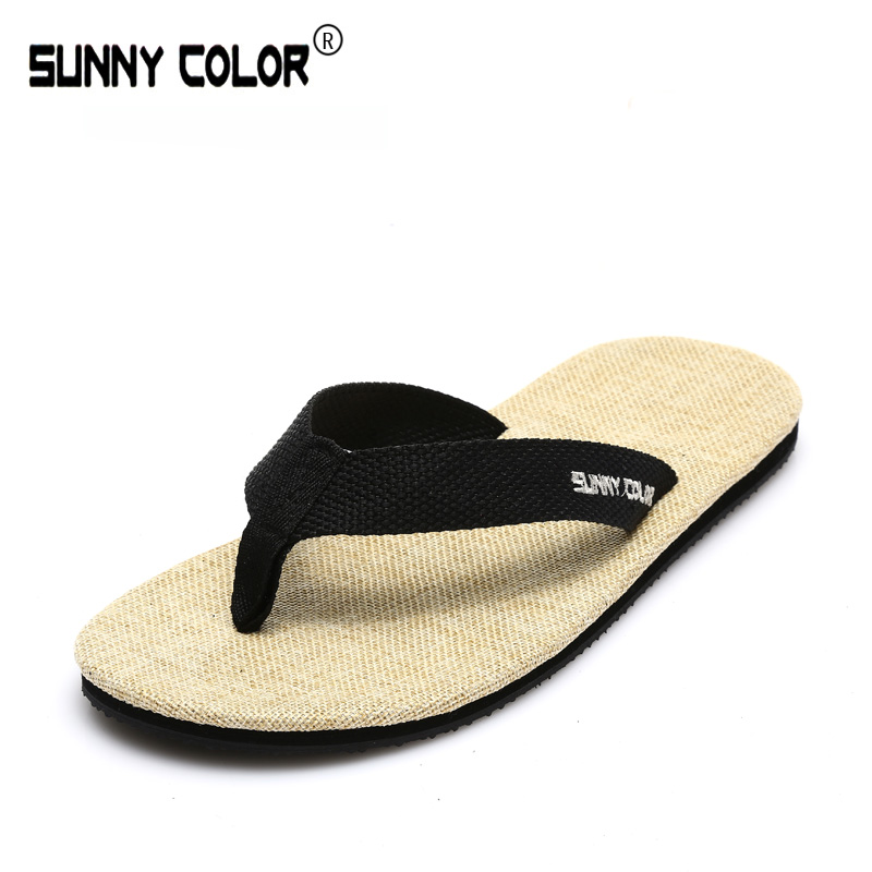 / 夏季透氣亞麻涼鞋夾腳拖鞋防滑沙灘鞋休閑人字拖男