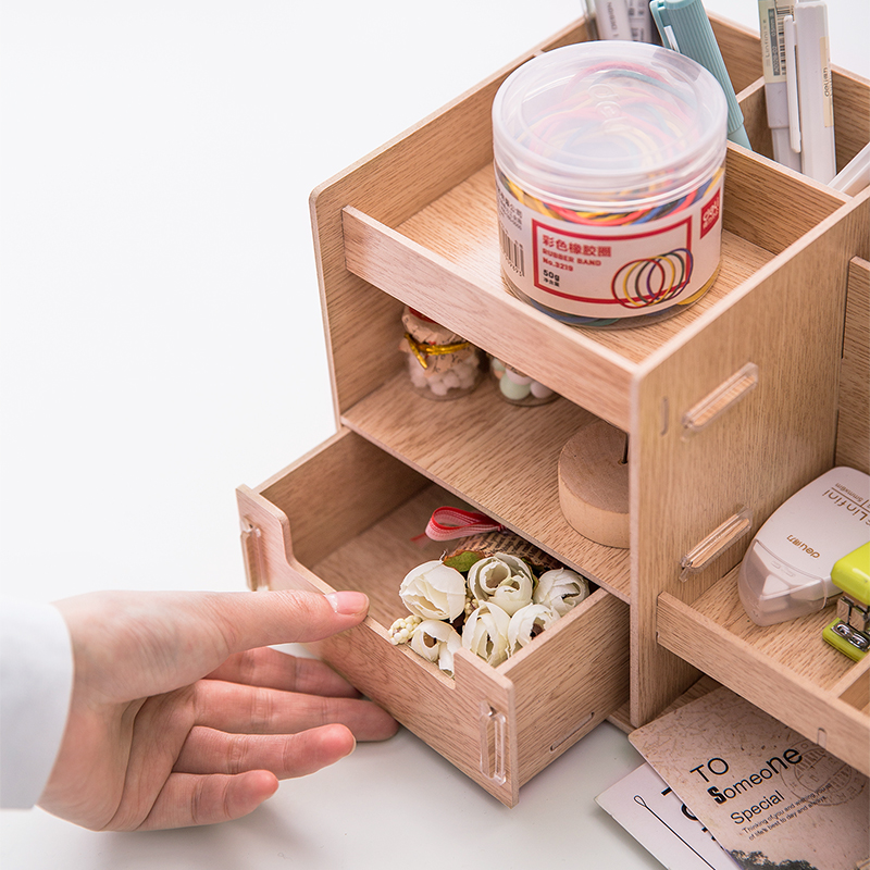 云木雜貨 多功能木質文件框桌面收納盒辦公學習書立筆筒組合