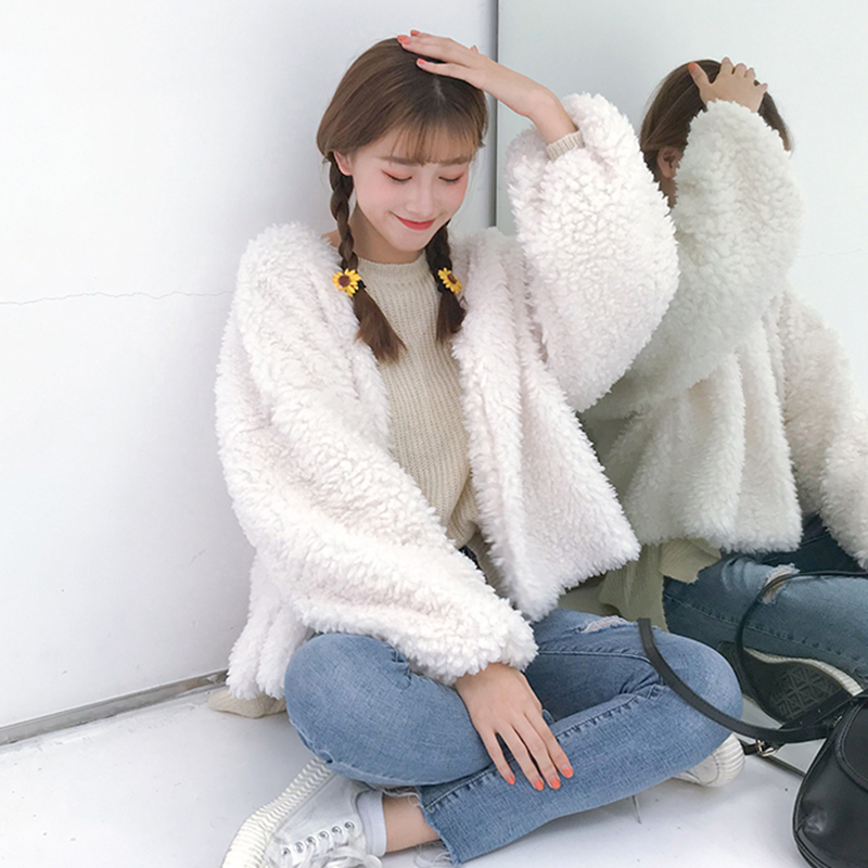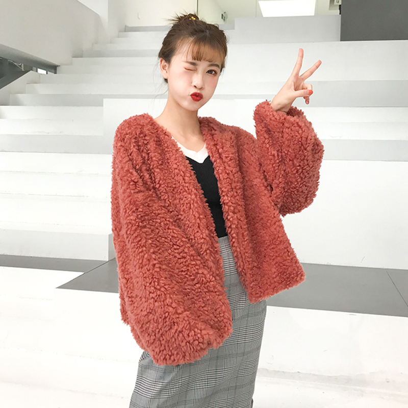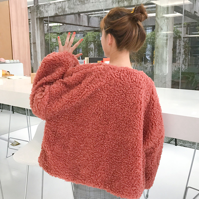 女裝秋季2018新款寬松短款羊羔毛開衫學生慵懶風保暖長袖外套上衣