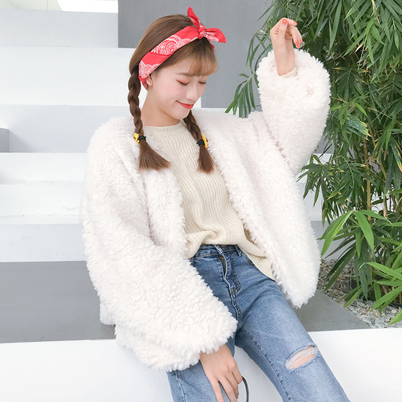 / 女裝秋季2018新款寬松短款羊羔毛開衫學生慵懶風保暖長袖外套上衣