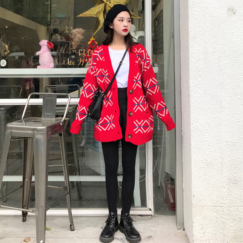 原宿外套女秋裝2018新款韓版針織開衫少女中長款時尚寬松長袖上衣