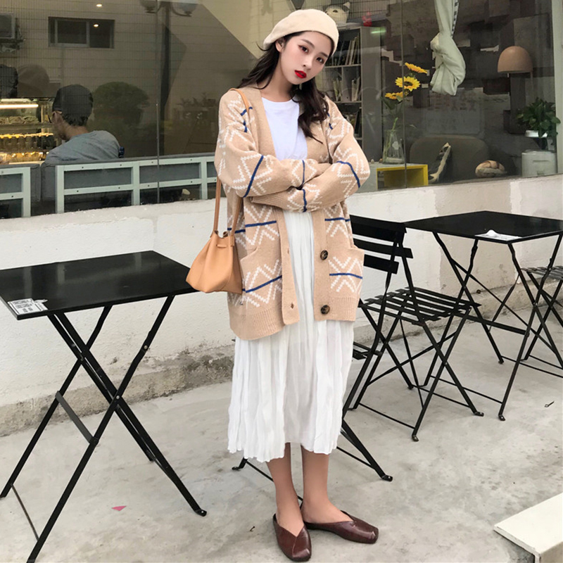 / 原宿外套女秋裝2018新款韓版針織開衫少女中長款時尚寬松長袖上衣