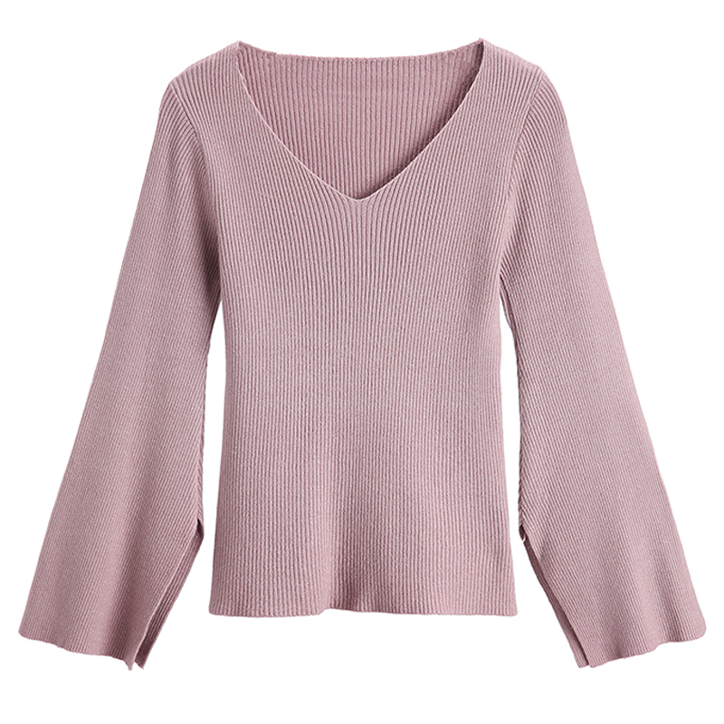 秋裝女新款港味復古開叉喇叭長袖針織衫氣質黑色修身打底短款上衣