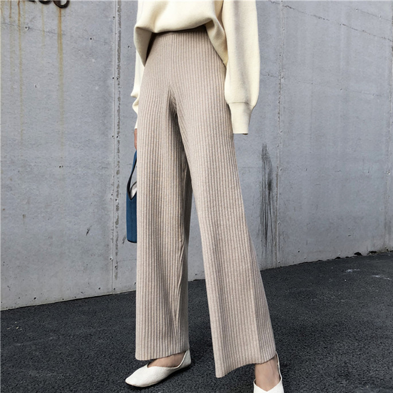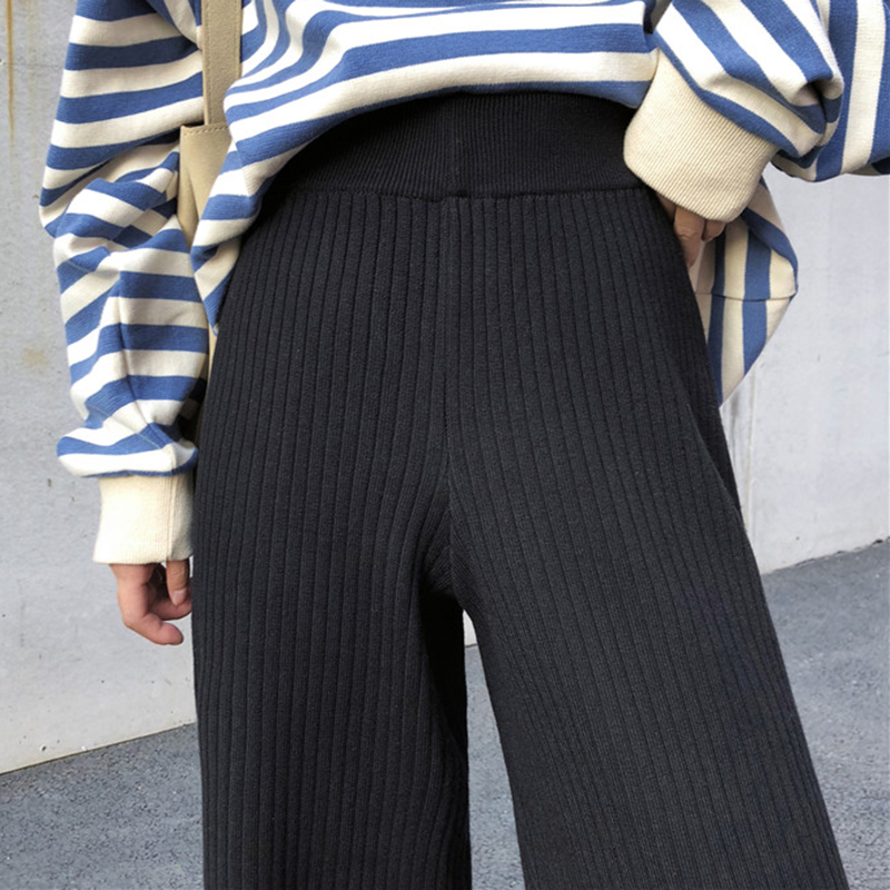 2018秋冬新款女裝墜感針織闊腿褲女學生寬松顯瘦黑色高腰休閑褲子