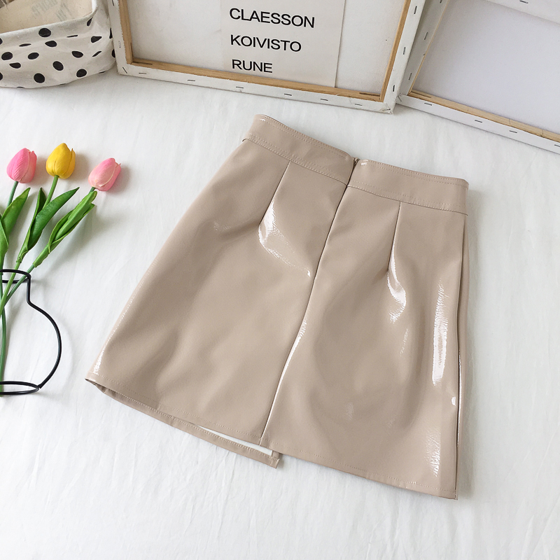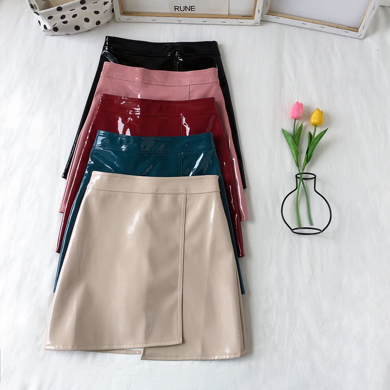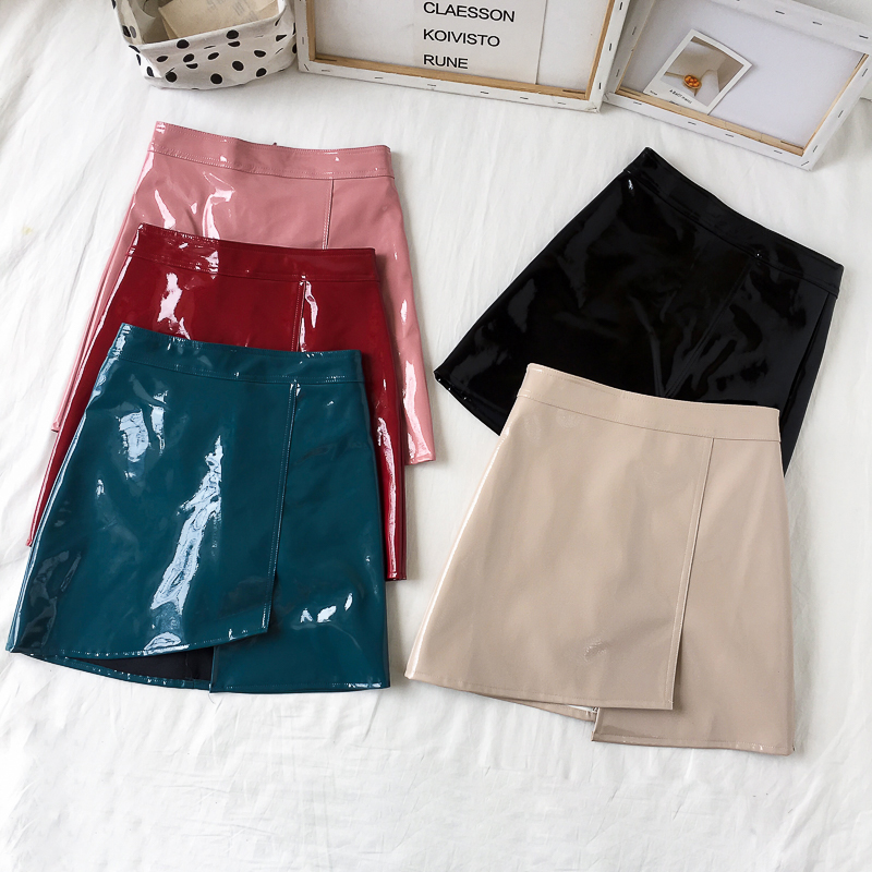 / 時尚亮皮短裙子秋裝女2018新款高腰顯瘦不規則半身裙包臀A字裙潮
