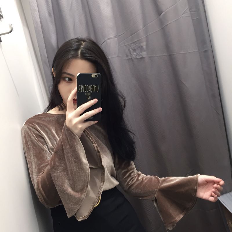 / 秋款韓國chic純色百搭寬松顯瘦喇叭袖圓領套頭長袖上衣T恤女