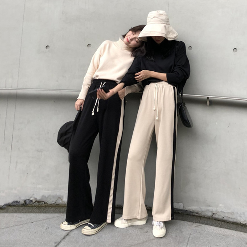 / 休閑長褲子秋裝女2018新款韓版個性拼色直筒褲學生時尚高腰闊腿褲