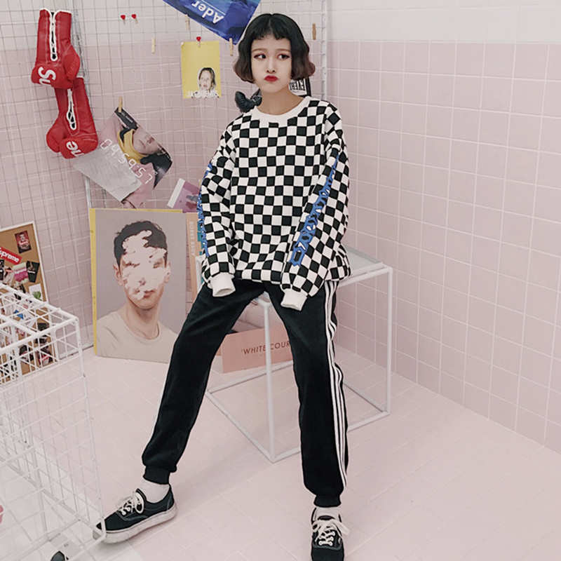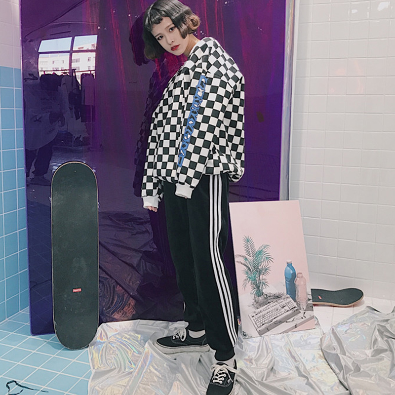 / 學生高腰顯瘦加絨初戀休閑褲子女秋冬裝新款條紋寬松時尚運動長褲