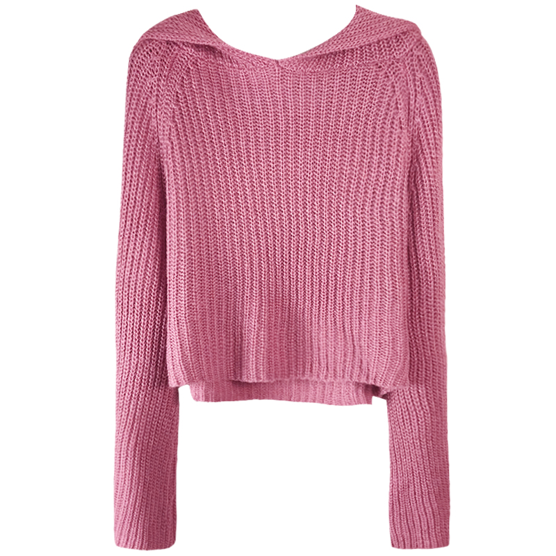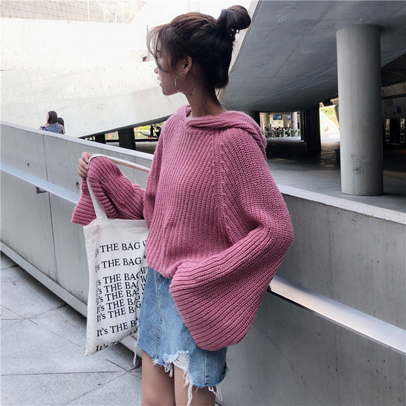 連帽套頭針織衫女2018秋裝新款慵懶風蝙蝠長袖毛衣寬松短外套上衣
