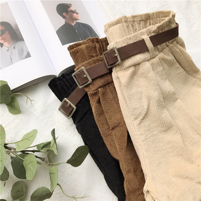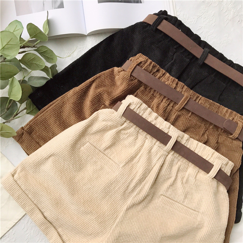 / 秋冬女裝韓版寬松燈芯絨加厚闊腿褲短褲高腰直筒褲休閑褲學生褲子