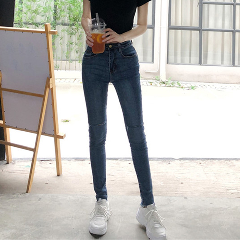 / 毛邊牛仔褲子女秋裝新款韓版修身顯瘦小腳鉛筆褲高腰打底緊身褲潮