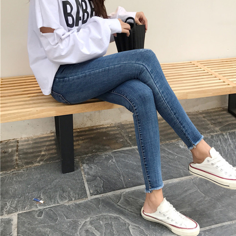 毛邊牛仔褲子女秋裝新款韓版修身顯瘦小腳鉛筆褲高腰打底緊身褲潮