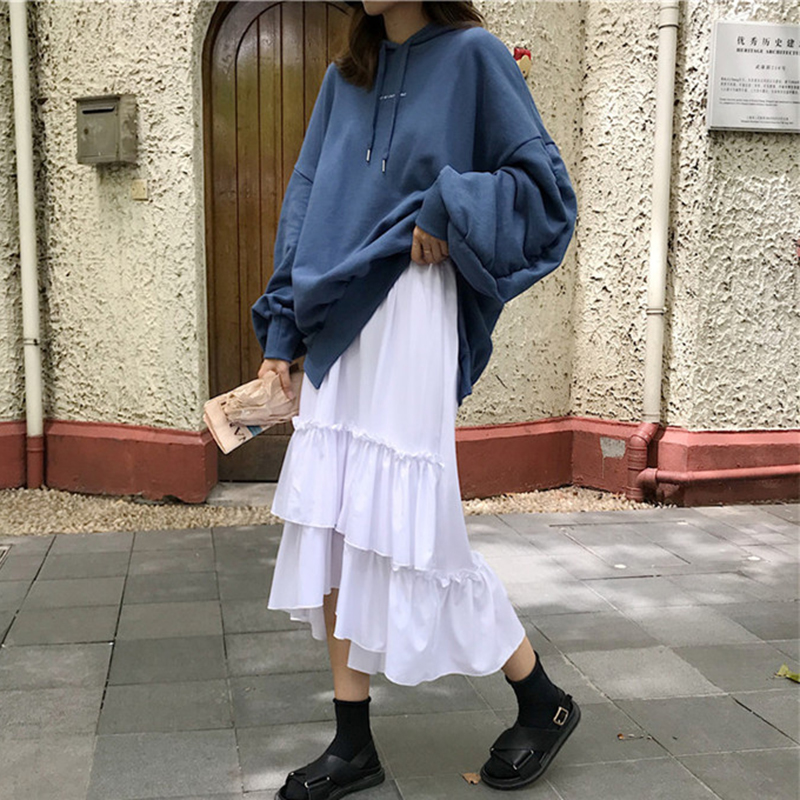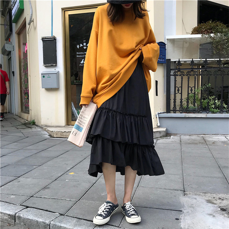 / 半身裙女秋裝2018新款氣質顯瘦不規則a字中長裙子高腰黑色蛋糕裙
