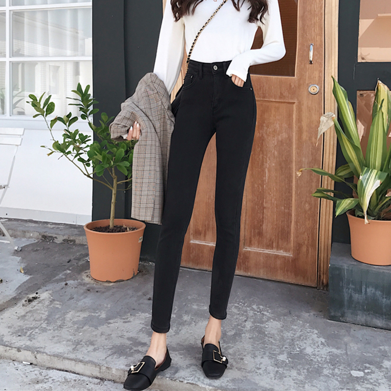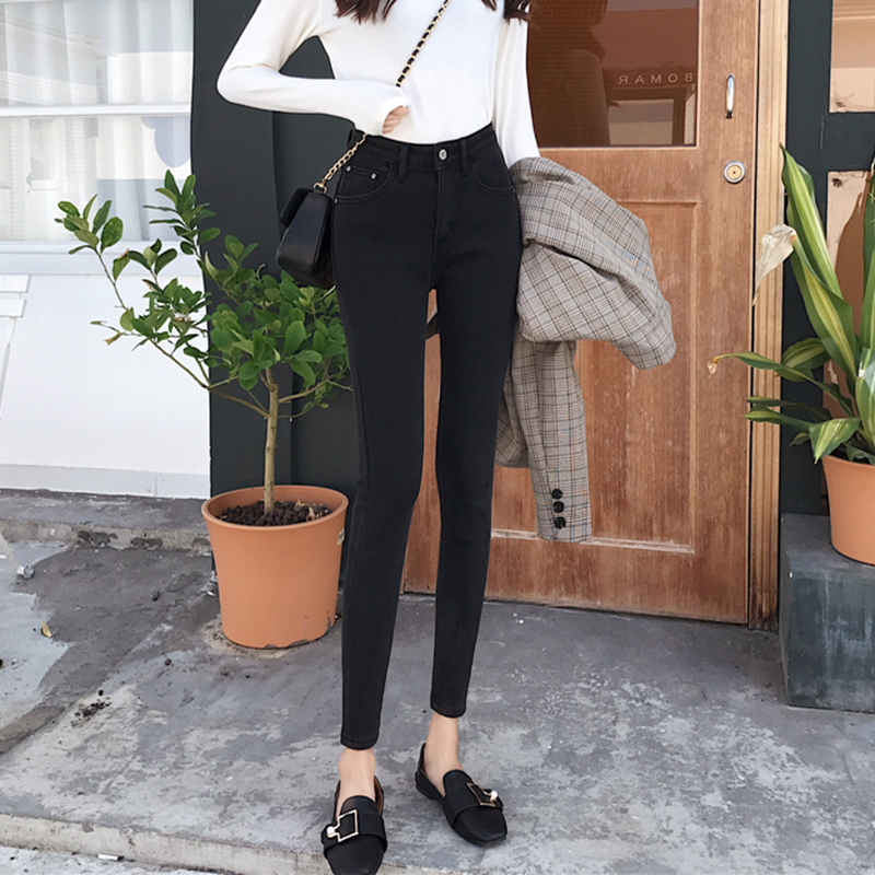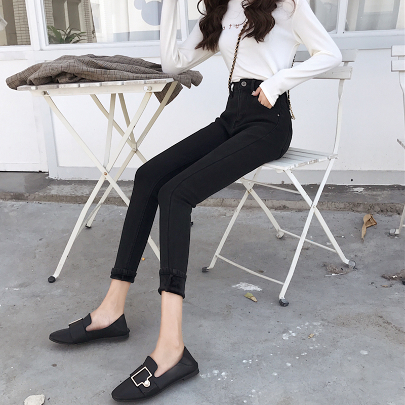 牛仔褲女秋冬裝2018新款黑色加絨高腰鉛筆褲子韓版學生緊身小腳褲