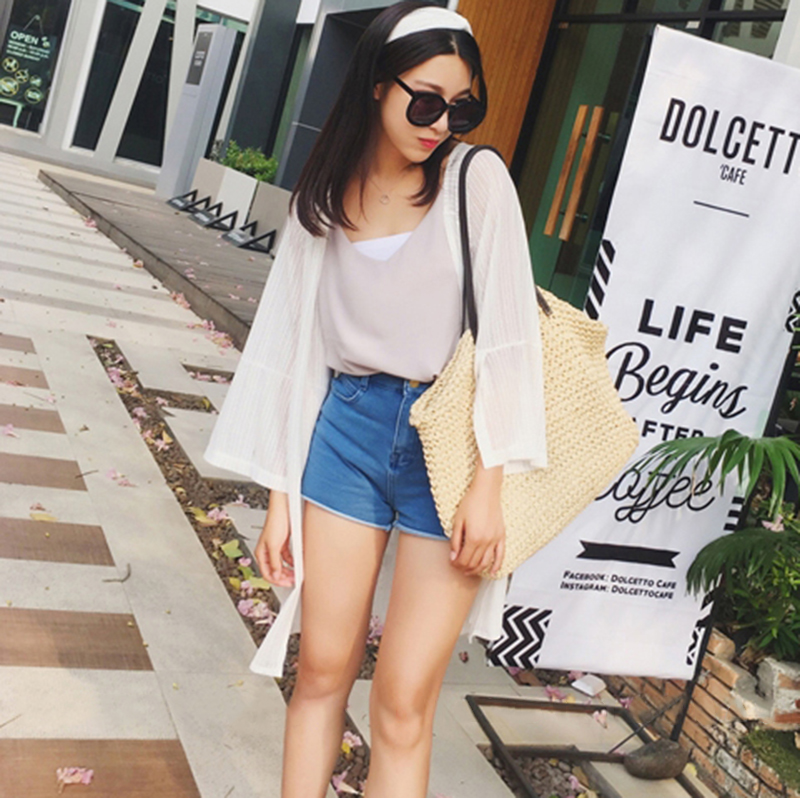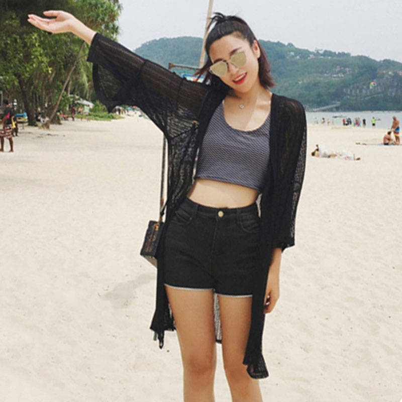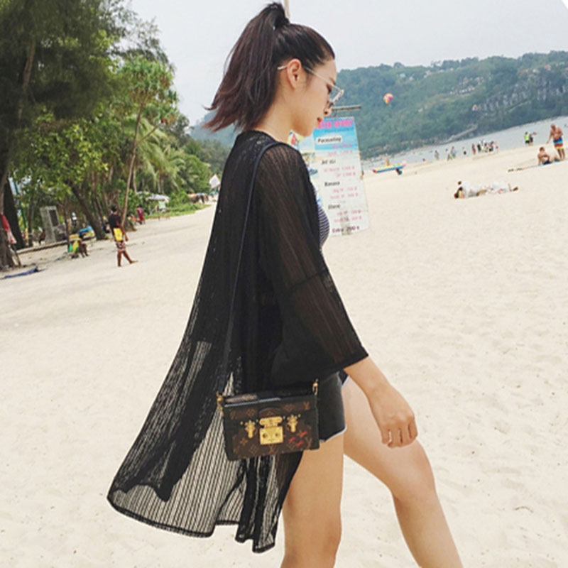夏季新款韓版女裝透視網紗寬松顯瘦中長款防曬衣空調開衫披肩外套