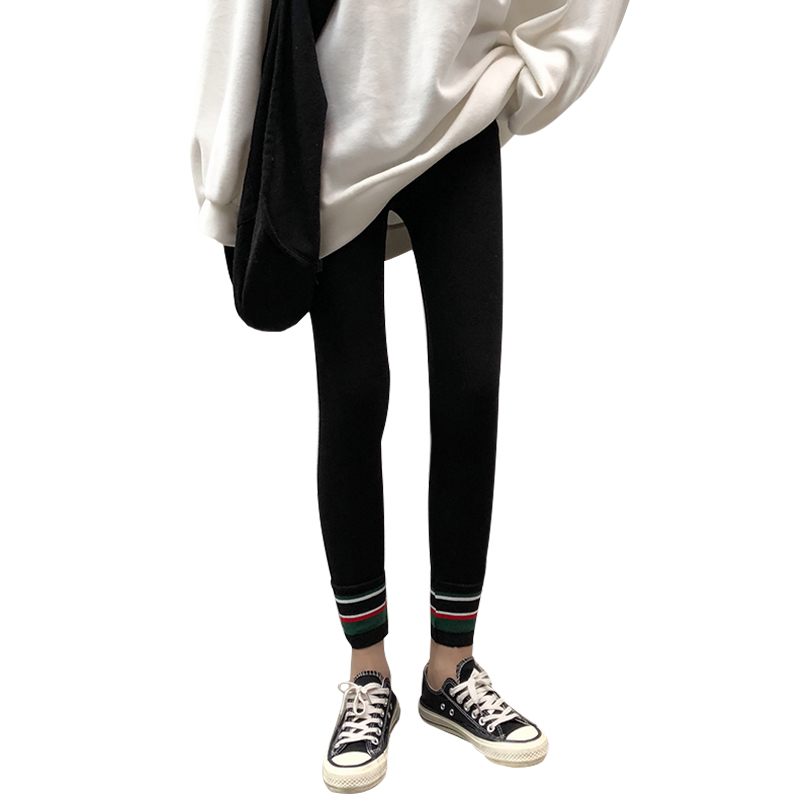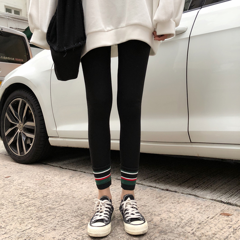 / 秋冬女裝韓版拼色加絨加厚保暖修身打底褲外穿休閑褲長褲學生褲子
