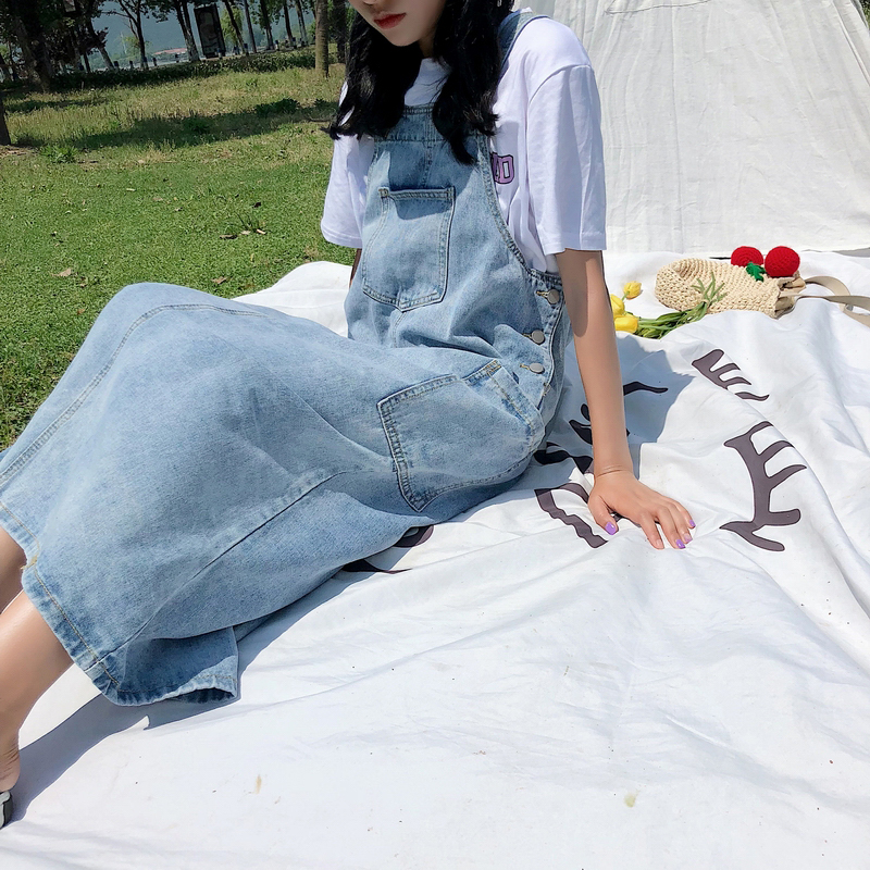 / 連衣裙女夏新款韓版女裝口袋水洗寬松牛仔背帶裙休閑百搭A字長裙