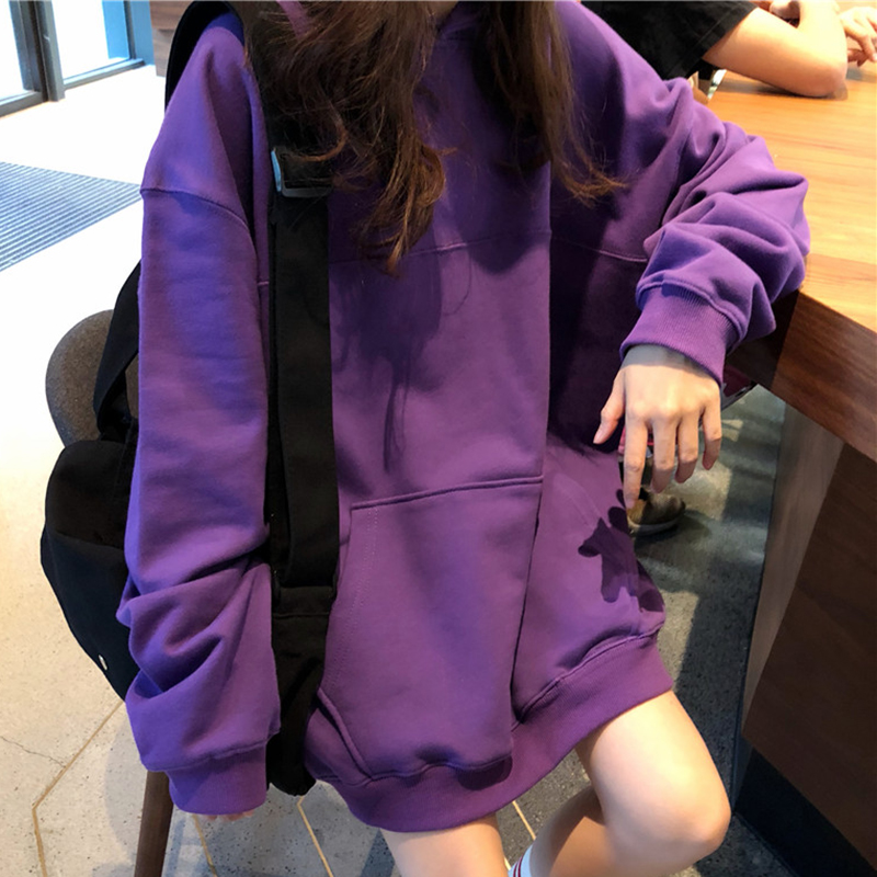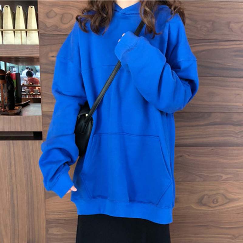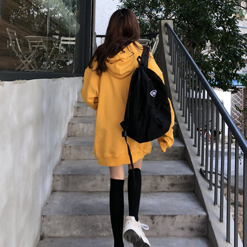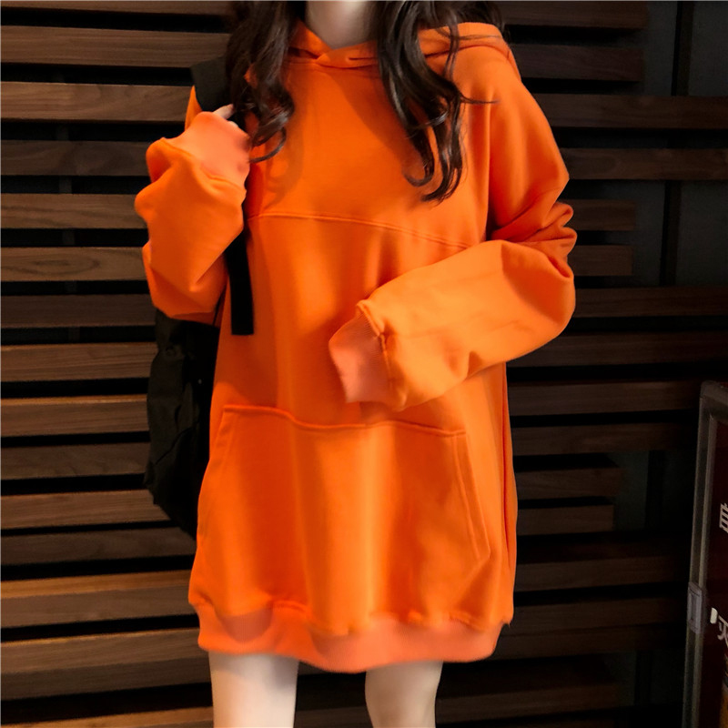 / 韓版糖果色加絨連帽衛衣秋冬女裝2018新款學生寬松中長款外套上衣