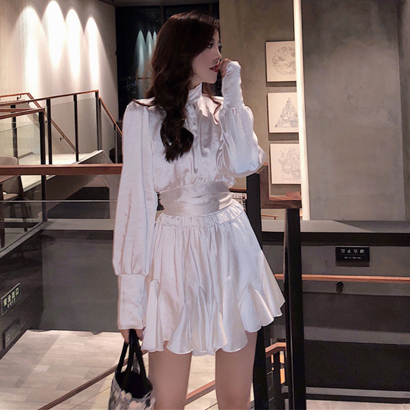 / 女神套裝秋冬2018新款小心機鏤空露背上衣氣質顯瘦荷葉邊半身裙子