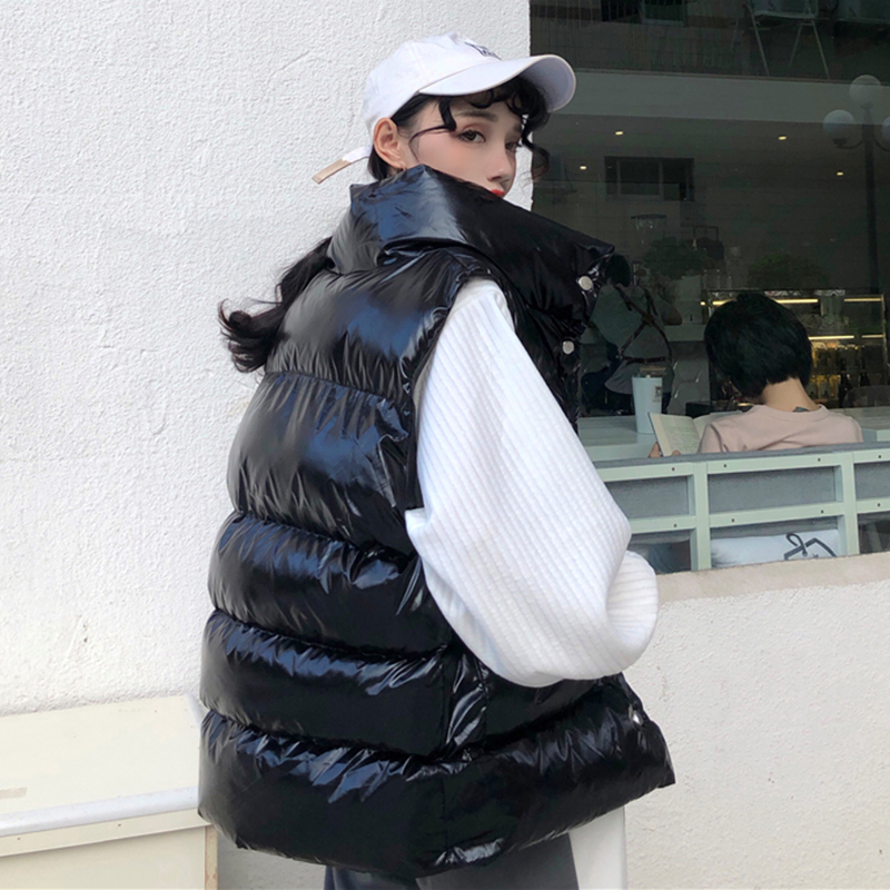 / 原宿中長款立領馬甲秋裝女2018新款韓版學生寬松黑色外套亮面棉襖