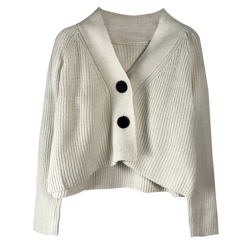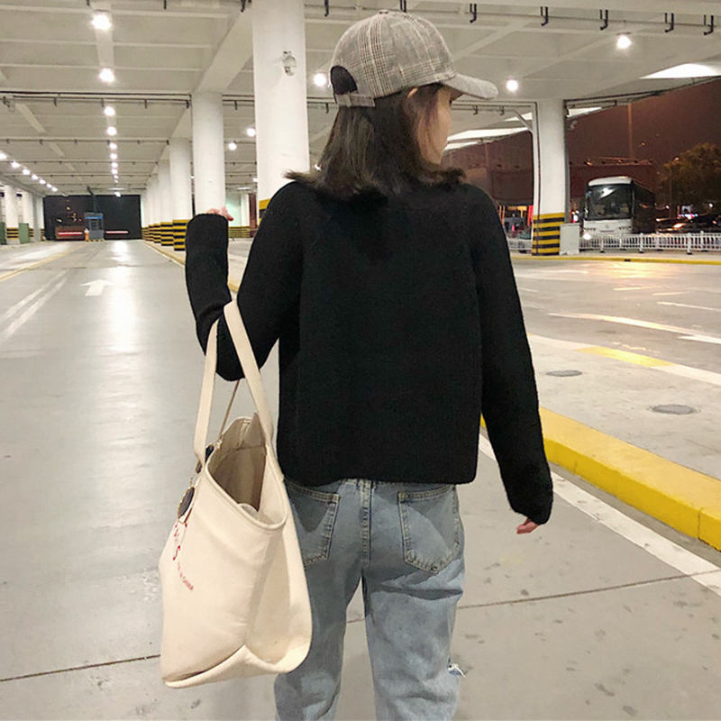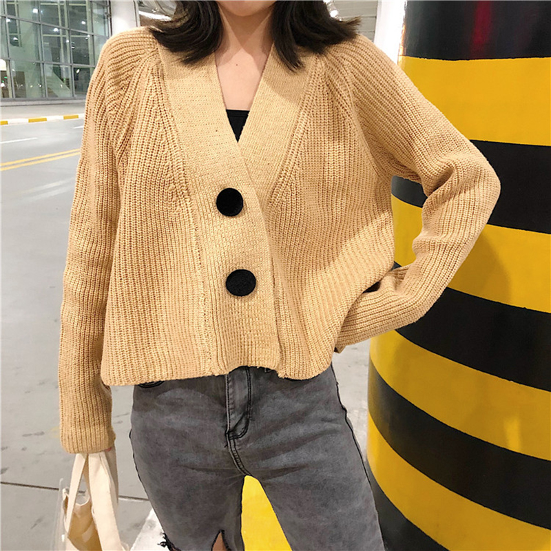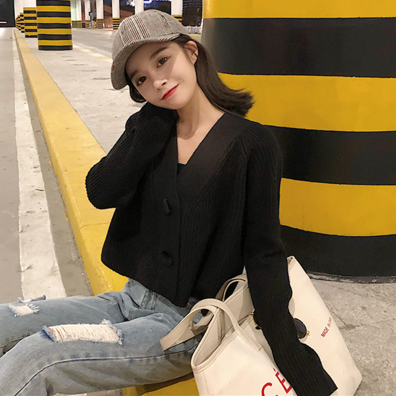 秋裝女2018新款韓版V領黑色針織毛衣開衫學生時尚長袖短外套上衣