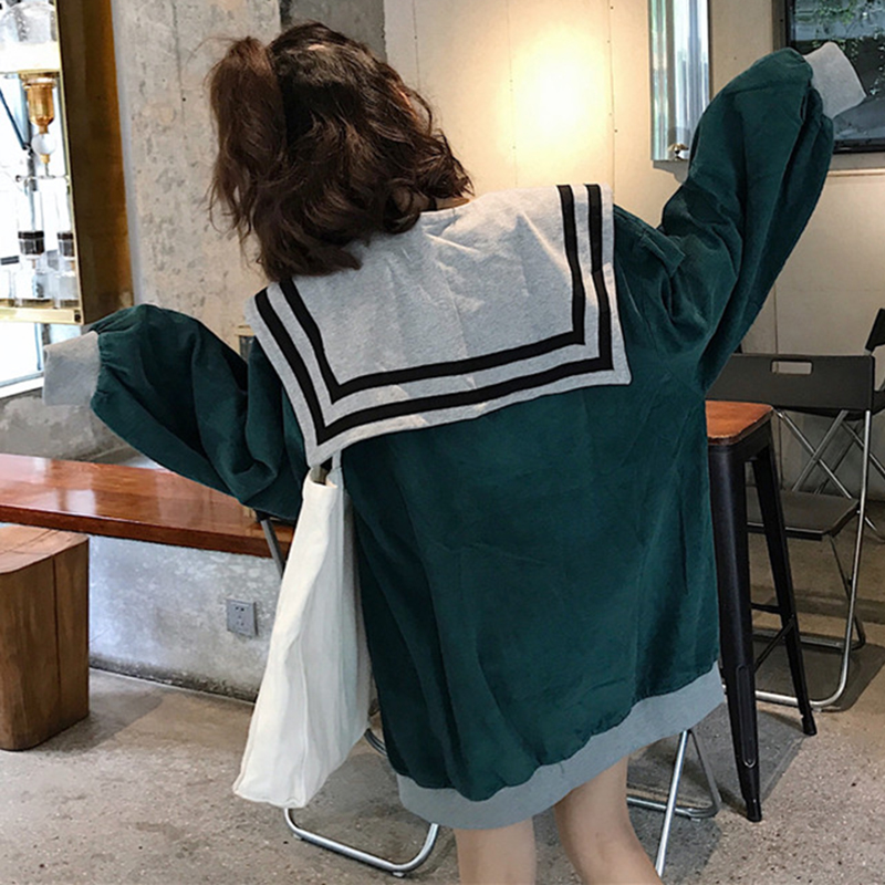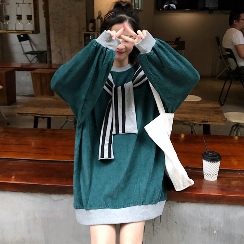 學生燈芯絨衛衣秋裝女2018新款韓版寬松中長款上衣外套可拆卸披肩