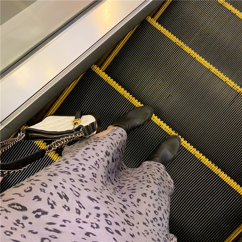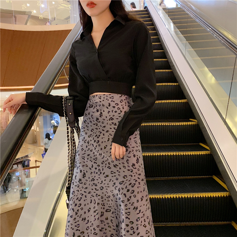 套裝女秋冬2018新款港味V領長袖黑色襯衫高腰顯瘦豹紋A字半身裙子