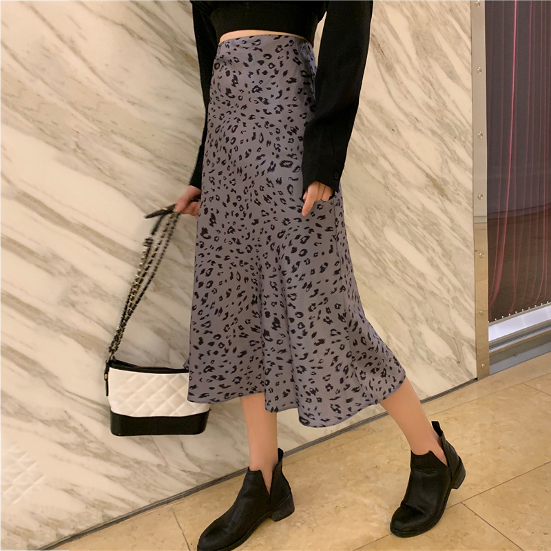 / 套裝女秋冬2018新款港味V領長袖黑色襯衫高腰顯瘦豹紋A字半身裙子