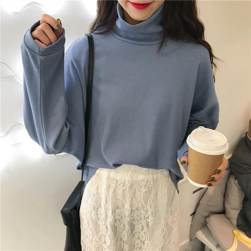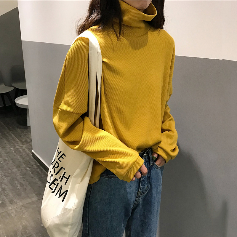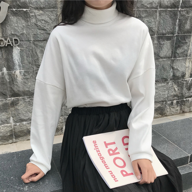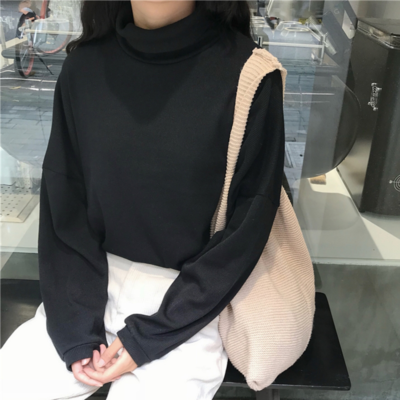 / 高領寬松打底衫女秋冬裝新款長袖上衣外穿套頭T恤黑色時尚上衣潮