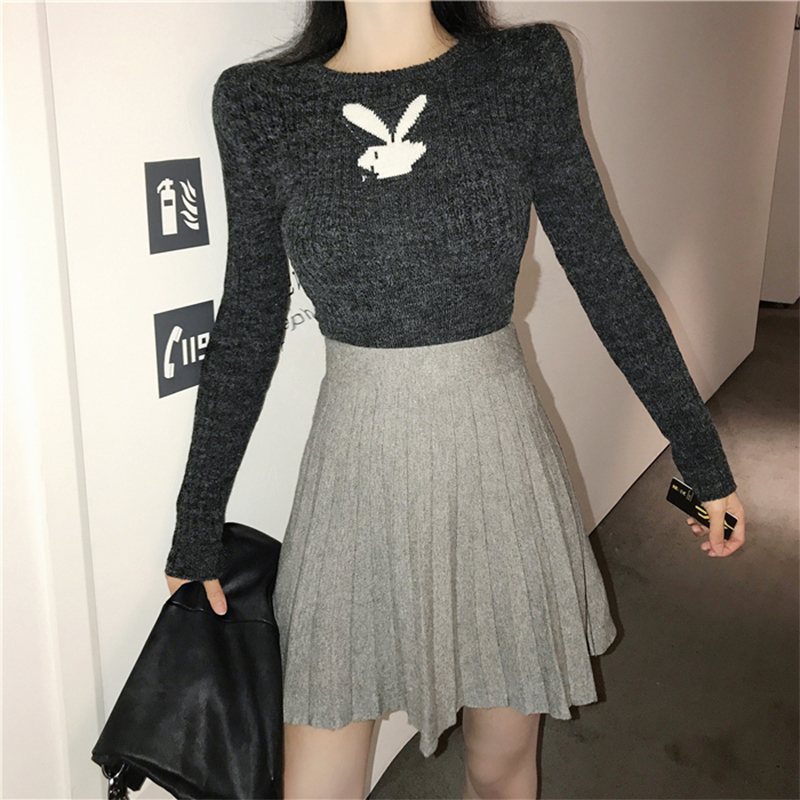 / 洋氣套裝女秋冬2018新款修身長袖打底毛衣高腰顯瘦百褶針織半身裙