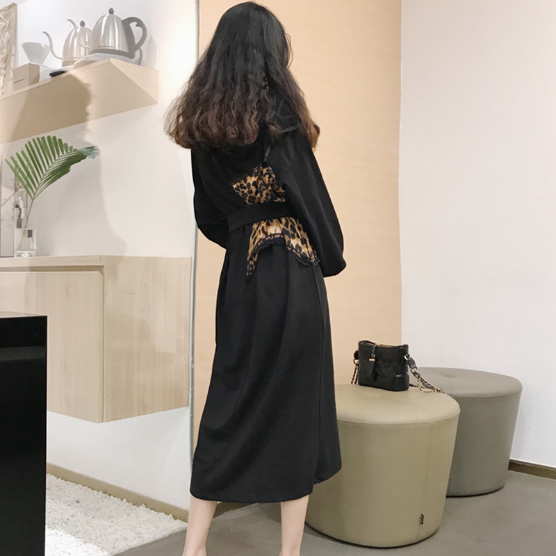 / 秋裝女2018新款時尚豹紋拼接V領長袖連衣裙氣質收腰顯瘦中長裙子