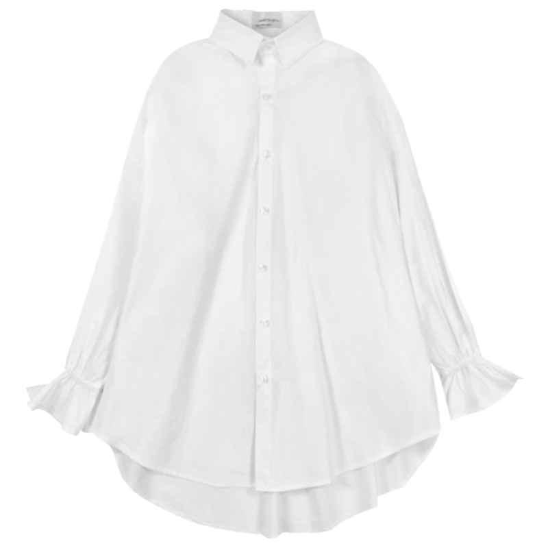 / 秋裝女2018新款韓版簡約寬松中長白襯衫學生休閑喇叭長袖上衣外套