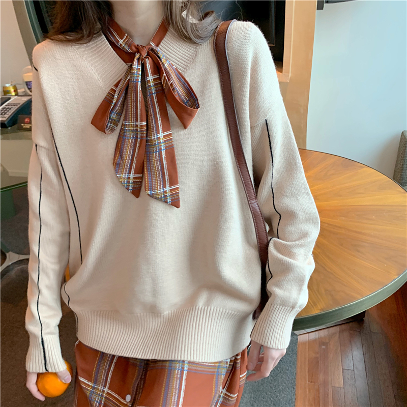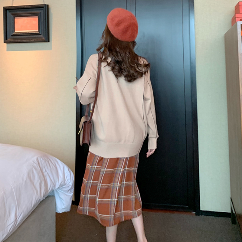 連衣裙|卡其毛衣|白色毛衣