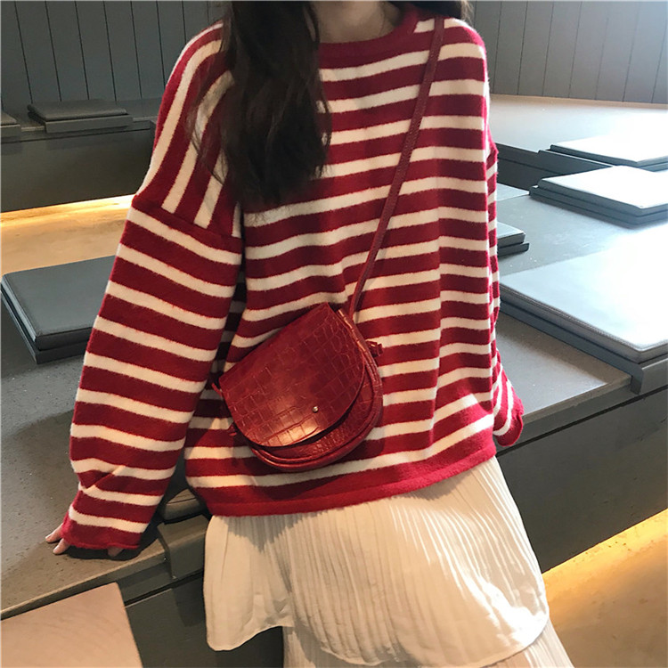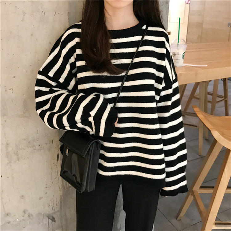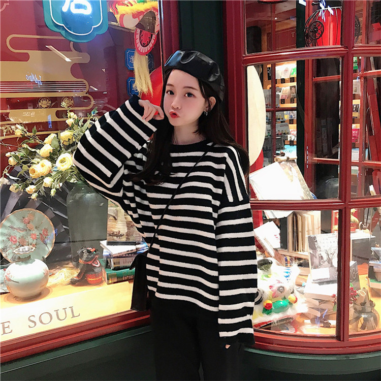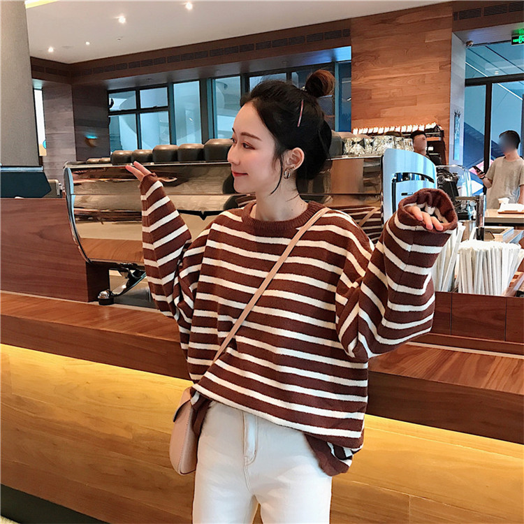可可里小姐~寬松顯瘦條紋圓領毛衣