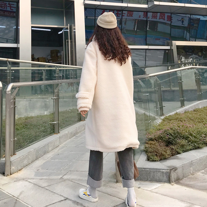 韓版寬松中長款牛角扣羊羔毛上衣秋冬新款女裝矮個子保暖棉衣外套