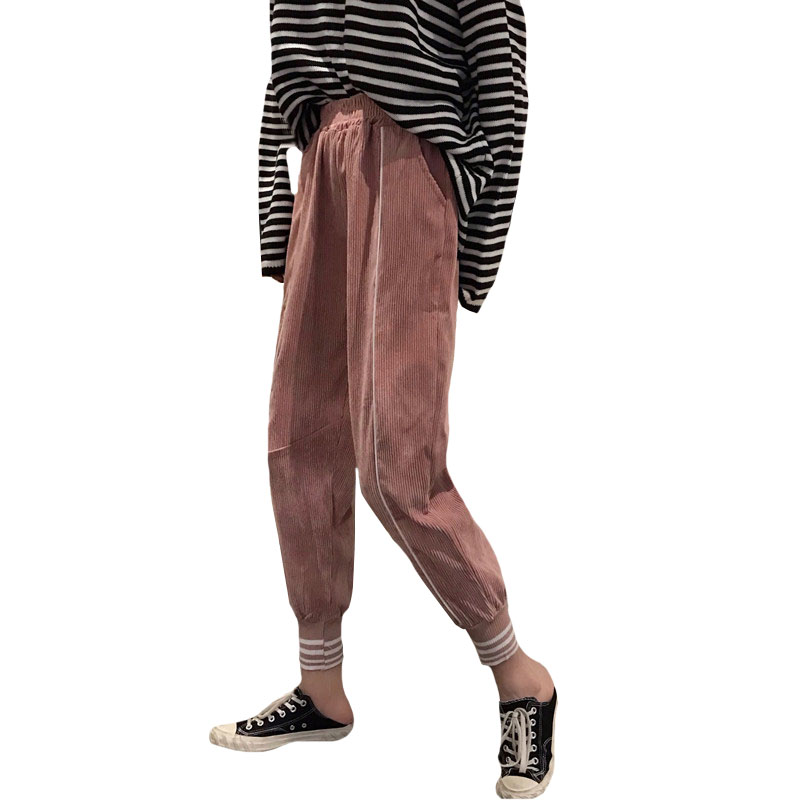 / 秋季韓版寬松百搭燈芯絨哈倫褲高腰蘿卜褲休閑褲九分褲學生褲子女