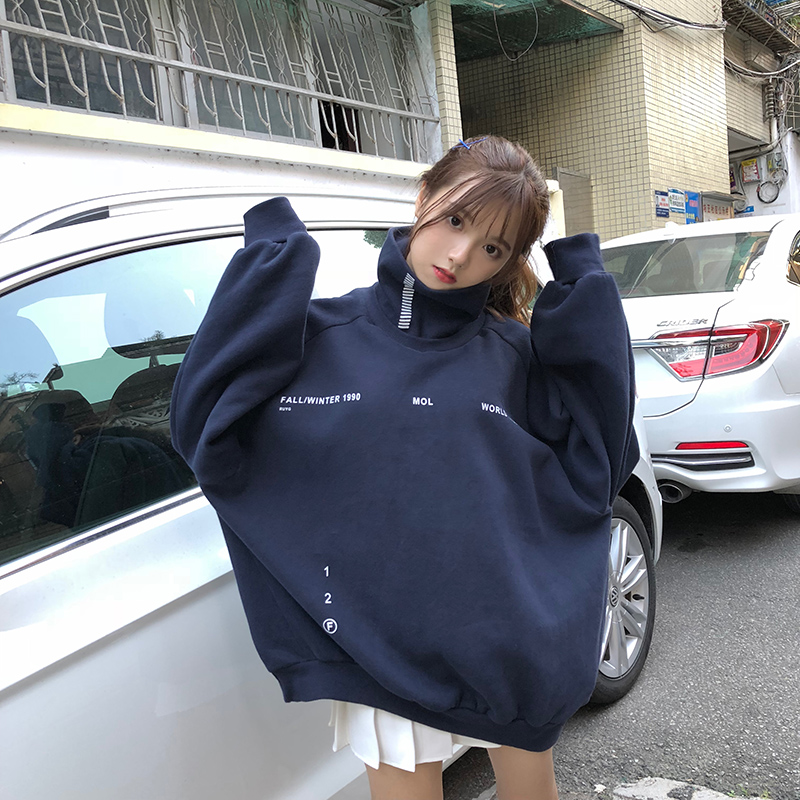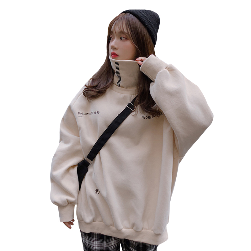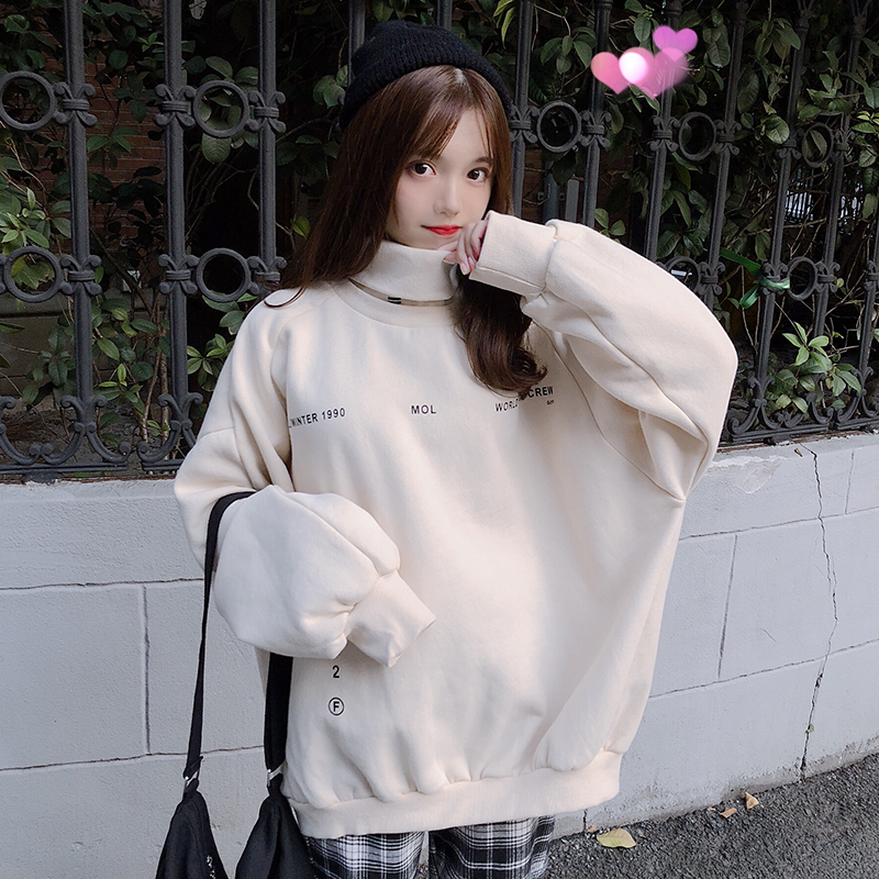 / 秋冬韓版寬松慵懶風字母高領加絨加厚保暖套頭超火衛衣上衣外套女