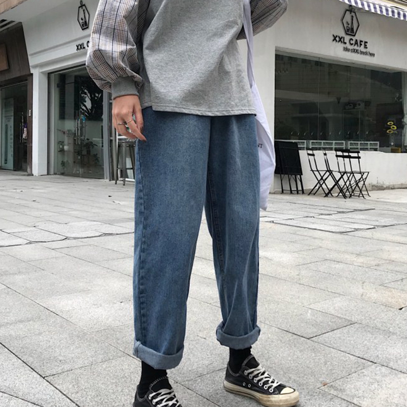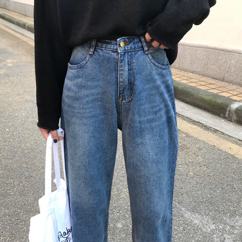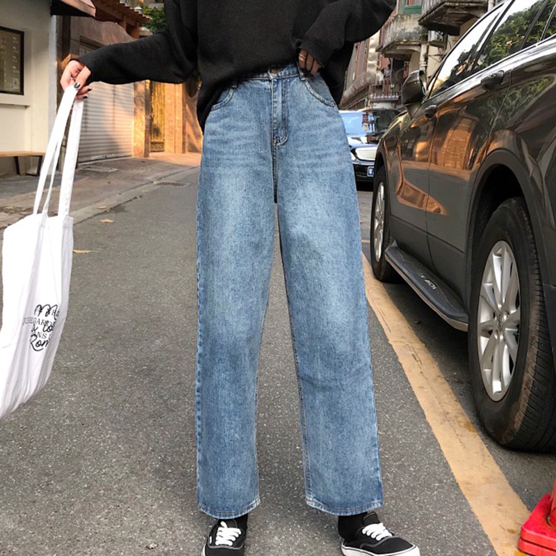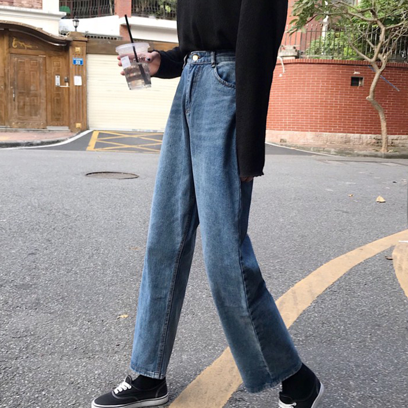 復古直筒褲秋裝女2018新款高腰顯瘦休閑牛仔褲學生寬松闊腿長褲子