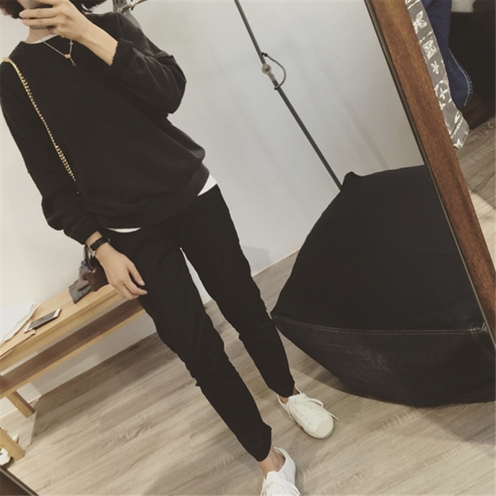 秋裝韓版新款寬松顯瘦圓領套頭上衣打底衫字母刺繡煙灰長袖衛衣女
