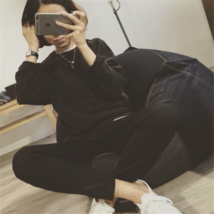 / 秋裝韓版新款寬松顯瘦圓領套頭上衣打底衫字母刺繡煙灰長袖衛衣女