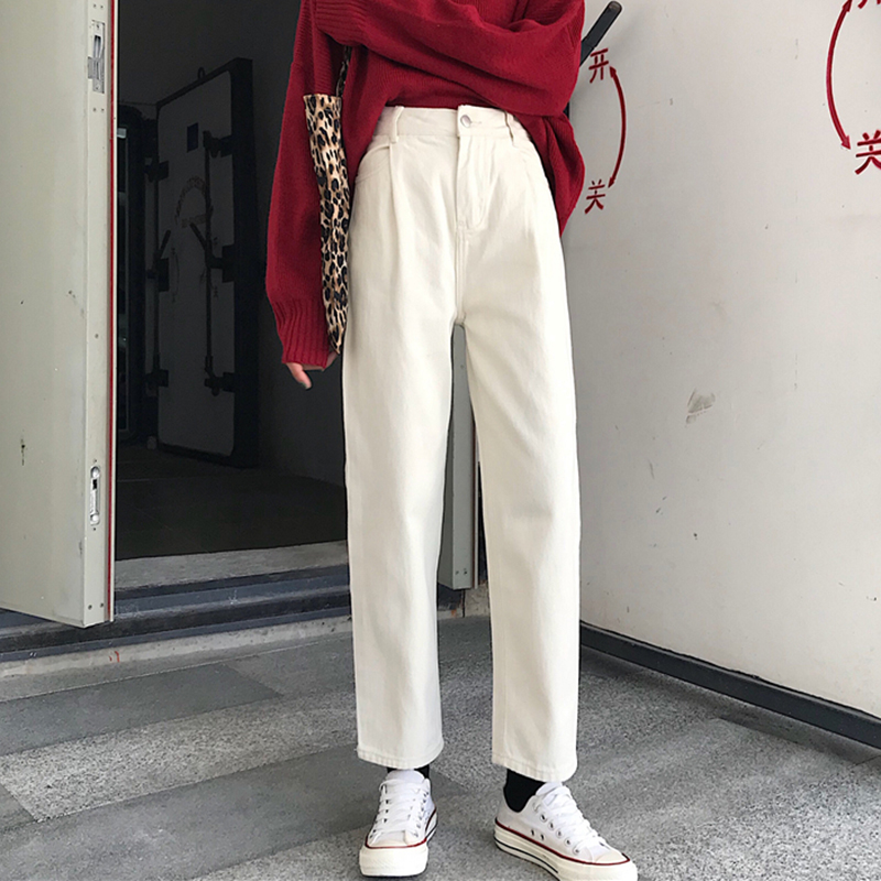 / 牛仔褲秋季2018新款女裝韓版高腰寬松直筒褲學生潮流黑色九分褲子